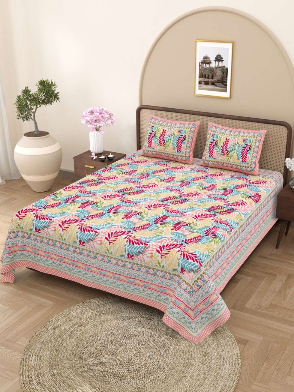100% Pure Cotton Traditional Printed Bedsheet for Double Bed King Size Bedsheet with 2 Pillow Covers