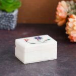 White Marble with floral inlay work Trinket Jewelry Box for Multi Purpose Use